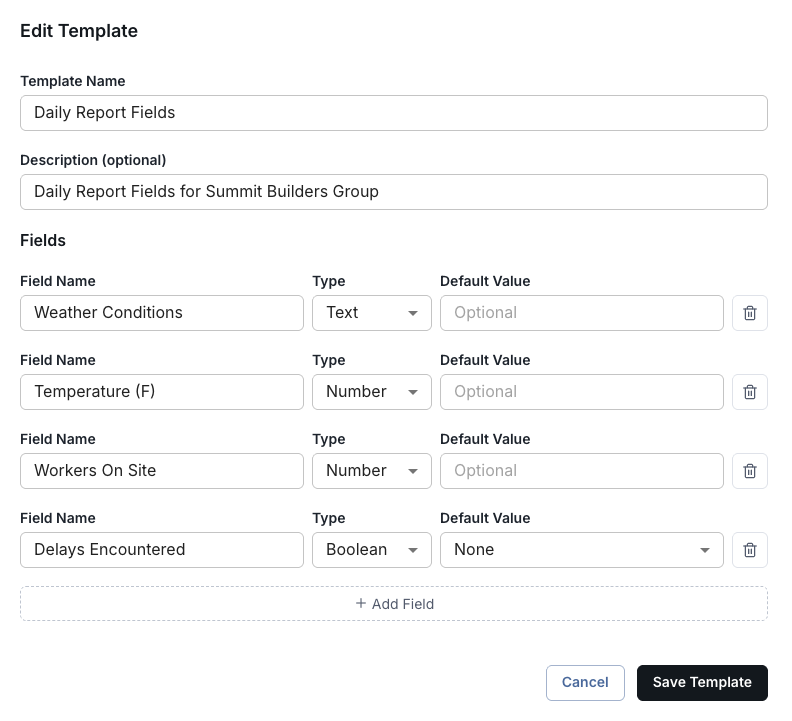 Use customizable templates to create professional daily progress reports. Photos attach automatically, checklists fill in, and your reports are ready in minutes — not hours.